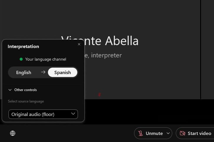 Desde el punto de vista del participante que está oyendo la interpretación, Webex suma la posibilidad de que este ajuste su volumen en relación con el original, es decir, que determine hasta qué nivel prefiere oír la interpretación sobre el audio original de sala, cosa que Zoom solo ofrece en dos posibilidades: oír solo la interpretación u oír también el original pero con una relación de volúmenes predefinida. Sin embargo, esta función no se ha complementado con la detección del idioma que se está hablando y en una reunión bidireccional el público deberá ir moviendo la barra del volumen de un lado a otro entre original e interpretación para oír una conversación interpretada entre dos personas que hablan idiomas distintos. Este es un fallo importante y esperamos que la empresa lo resuelva pronto.